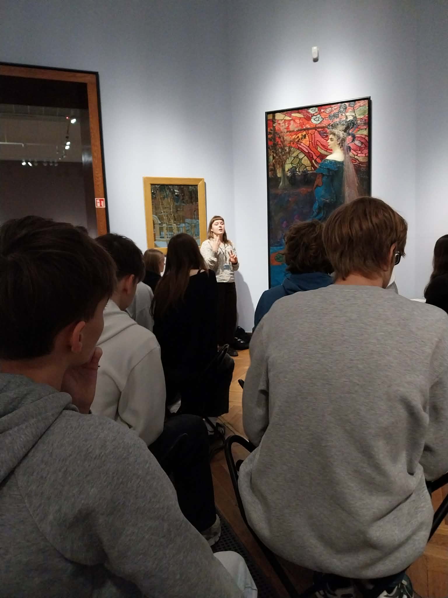 Uczniowie klasy 3a uczestniczyli w warsztatach poświęconych epoce Młodej Polski, zorganizowanych w Muzeum Narodowym. Podczas zajęć uczniowie poznali najważniejszych twórców tego okresu, obejrzeli dzieła malarzy takich jak Stanisław Wyspiański czy Jacek Malczewski oraz wzięli udział w twórczych ćwiczeniach dotyczących symboliki obrazów tego okresu.